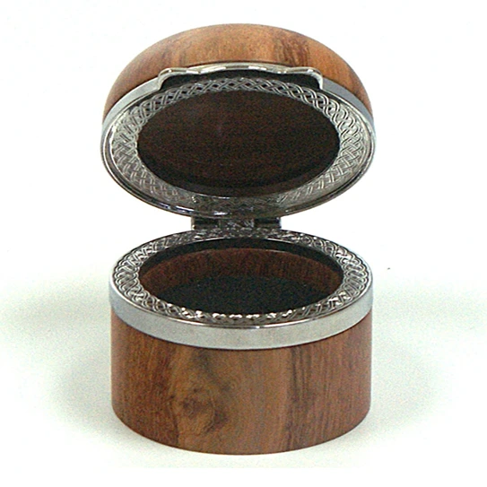 Compact pill or mint boxes with hinged lids. Available in gold or silver hardware with your choice of wood finish. Perfect for keeping pills, mints, or small keepsakes.